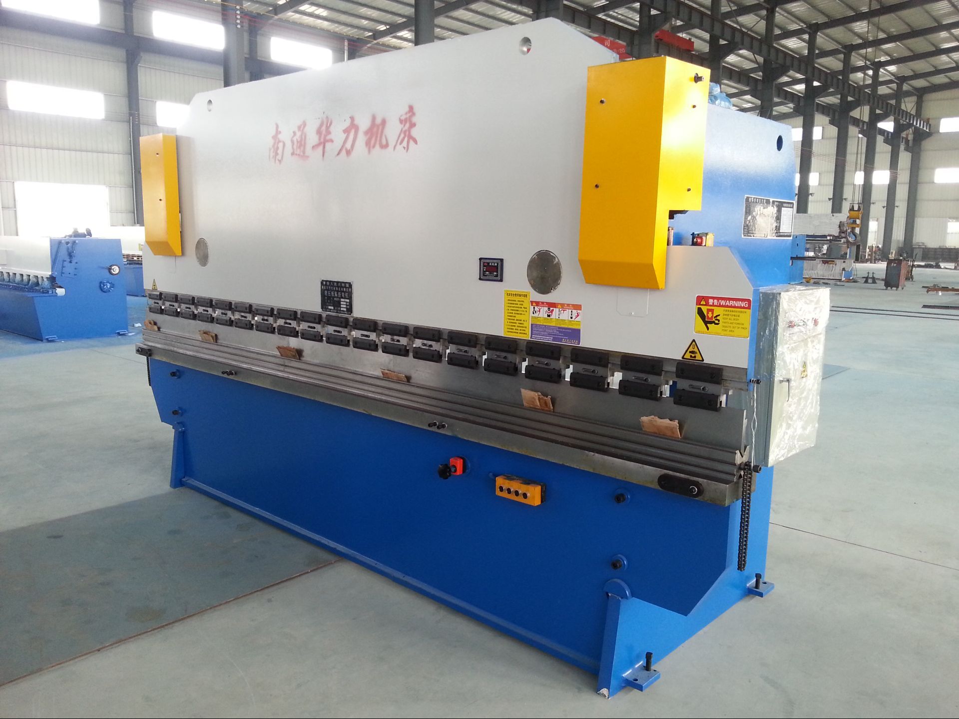采用全鋼焊接結構,具有足夠的強度和剛性, 液壓上傳動滑塊同步機構采用扭力軸強迫和機械檔塊,穩定可靠斜楔式的撓度補償結構.滑塊行程有機動快速調節,有手動調節,計數器顯示,后擋料采用機動快速調節,手動微調,計數器顯示。
